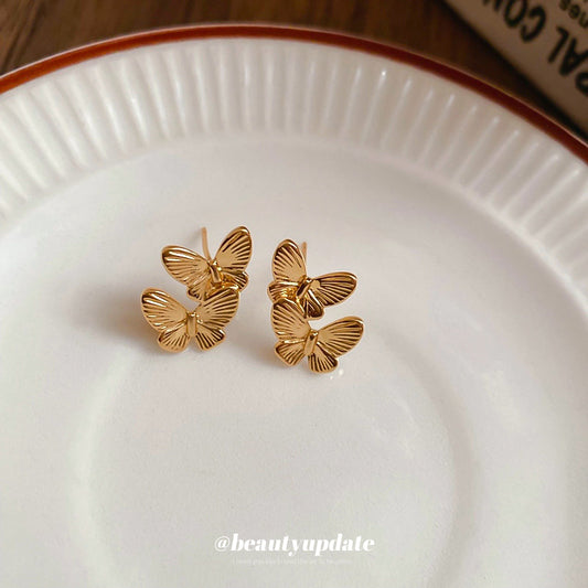 A廠【HE24490】真金電鍍銀針簡約蝴蝶耳環復古時尚耳環女小眾百搭耳環輕奢高級感 25.01-1
