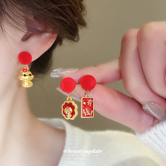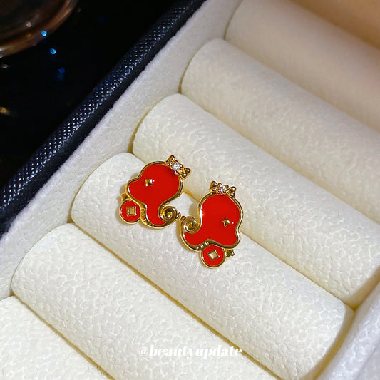 A廠【HE24302】925銀針本命年滴油小蛇新年耳環時尚百搭耳環小眾設計耳飾輕奢高級感 24.12-3