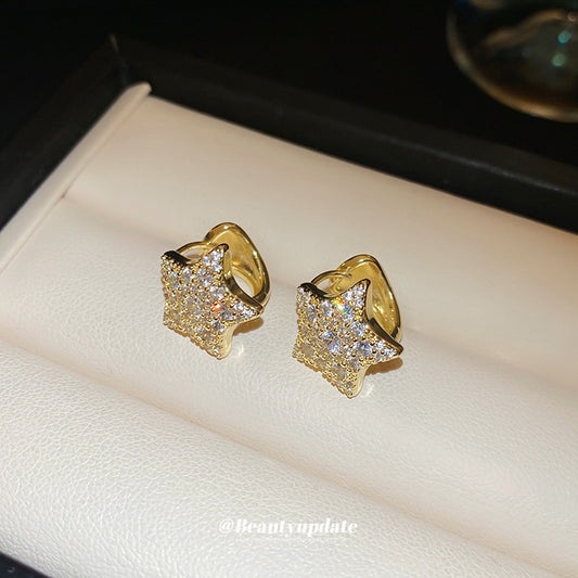 A廠【HE24255】真金電鍍超閃鋯石星星耳扣女小眾簡約耳環時尚百搭耳飾輕奢高級感 24.12-3