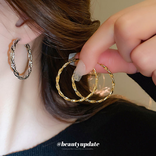 A廠【HE24206】真金電鍍925銀針麻花耳圈耳環女百搭簡約耳環時尚小眾耳飾輕奢高級感 24.12-2