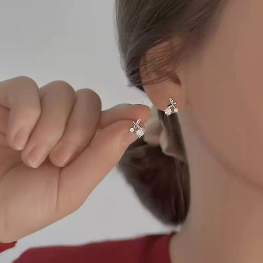 E廠【YC9279E】S999足銀四芒星滿鑽蝴蝶結耳環輕奢小巧精緻小眾設計感耳飾女 24.01-4