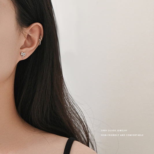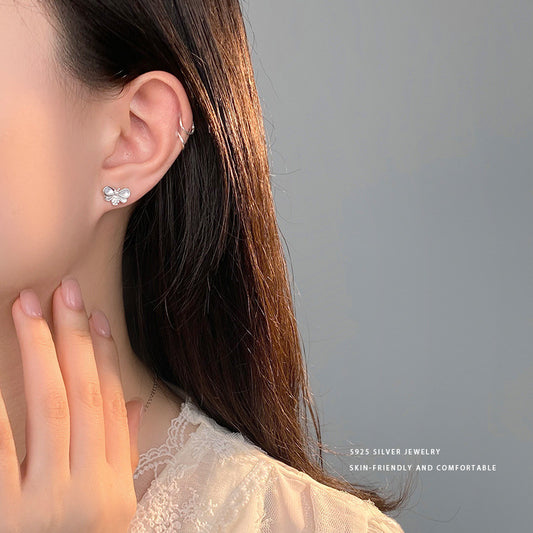 E廠【YC9268E】S999足銀小巧精緻鑲鑽蝴蝶結耳環輕奢小眾高級感設計感女新款 24.01-1