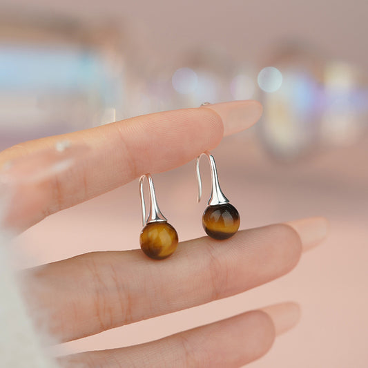 E廠【YC9338E】S925純銀輕奢虎眼石耳鉤女復古高級感個性小眾簡約耳鉤 25.04-2