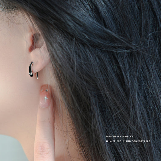 E廠【YC9321E】S999足銀帥氣黑色滴膠水滴耳環女個性時尚冷淡風ins耳飾 24.05-3