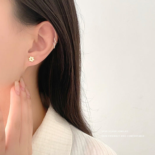 E廠【YC9266E】S999足銀森系花朵耳環女甜美小清新田園風百搭耳環 24.03-1