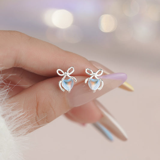 E廠【YC9370E】S925純銀蝴蝶結愛心耳環炫彩韓風多巴胺獨特設計甜美耳飾 25.07-1