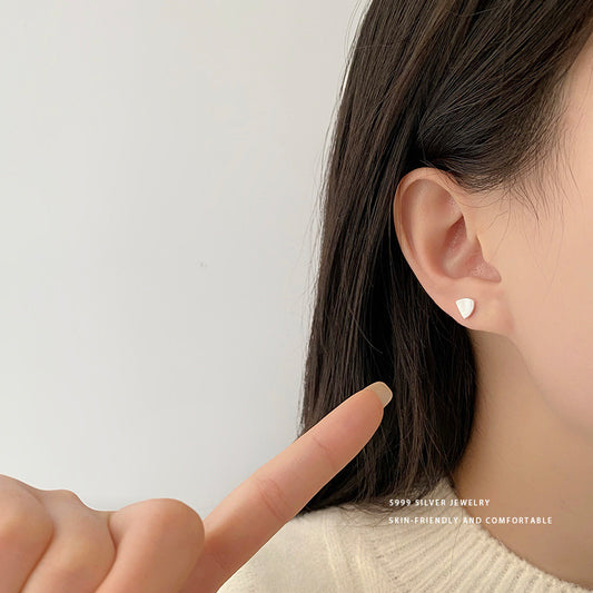 E廠【YC9366E】S999足銀拉絲貝殼三角形耳環女輕奢高級感小眾設計感耳飾 24.01-4