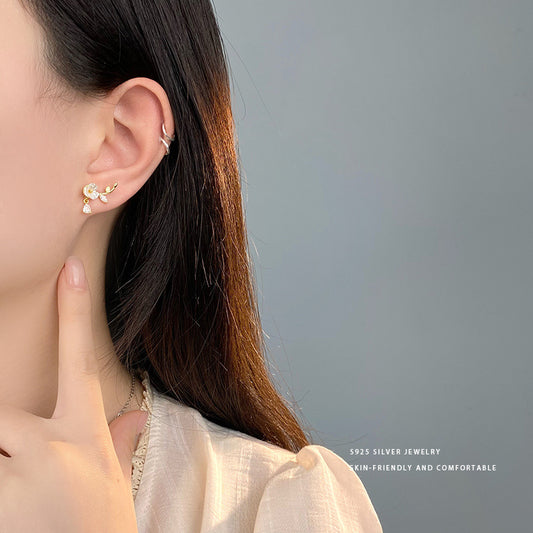 E廠【YC9297E】S925純銀精美水滴鑽花朵樹葉耳環女夢幻絕美仙女風耳飾品 24.05-4