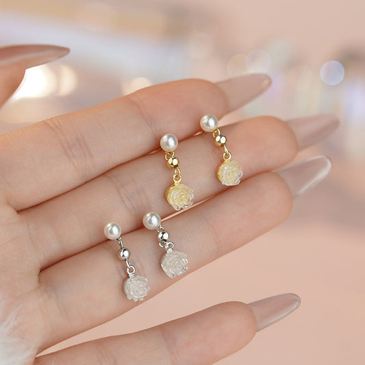E廠【YC9452E】S999足銀森系珍珠玫瑰花耳環女小眾氣質優雅甜美溫柔耳飾 25.04-4