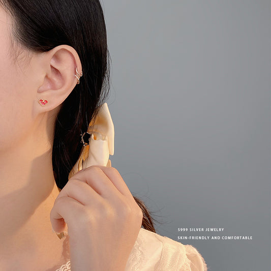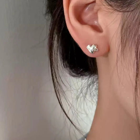 E廠【YC9394E】S999足銀甜酷愛心耳環女養耳洞耳骨釘高級感時尚耳環耳環女 24.05-1