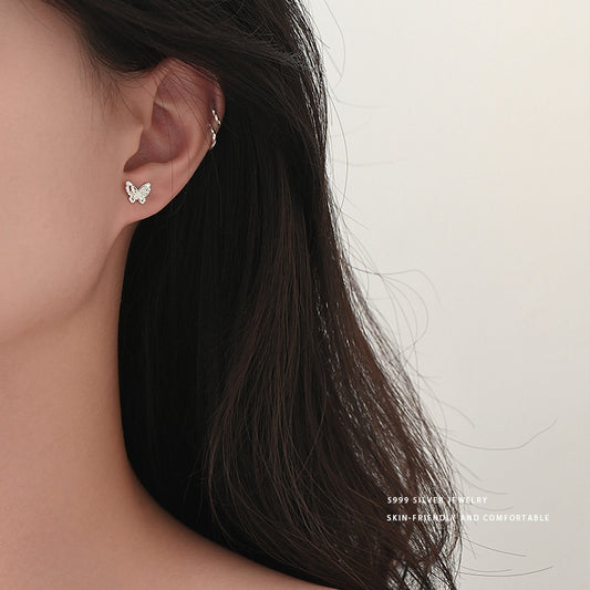 E廠【YC9460E】S999足銀精緻時尚輕奢蝴蝶耳環百搭通勤小眾設計感養耳洞耳飾 24.01-1