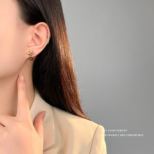 E廠【YC9451E】S999足銀簡約豆豆耳環女小眾設計感百搭日常款耳環耳飾品 24.03-3