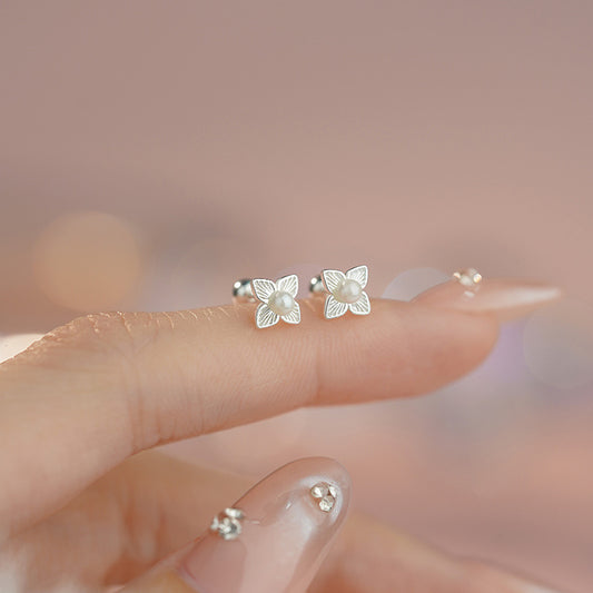 E廠【YC9393E】S999足銀貝珠丁香花螺絲耳環花朵睡覺甜美耳飾簡約高級感 25.03-4