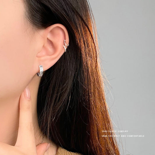 E廠【YC9445E】S999足銀新中式貔貅紋理耳扣女帥氣甜酷風時尚個性耳飾品 24.02-3