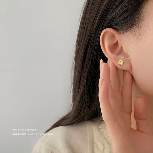 E廠【YC9465E】S999足銀小巧不對稱圓形鋯石耳環女輕奢高級感耳環耳飾品 24.01-4