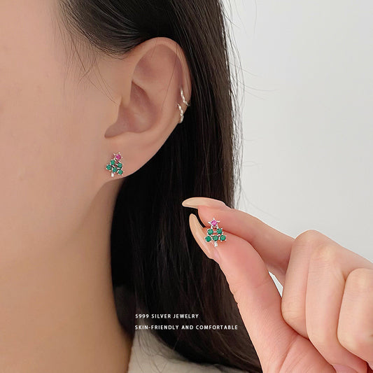 E廠【YC9582E】S999足銀可愛聖誕樹耳環女氛圍感設計感百搭耳環 24.03-1