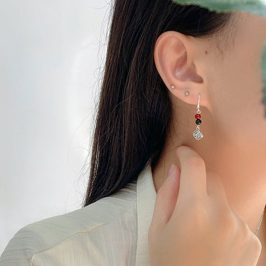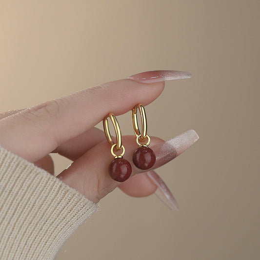 E廠【YC9571E】S925純銀氣質仿南紅瑪瑙耳環女百搭簡約時尚通勤個性耳環 24.09-3