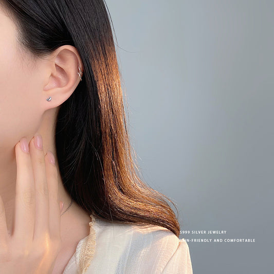 E廠【YC9590E】S999足銀個性月亮耳環女小巧復古做舊小眾設計感耳環耳環 24.03-3