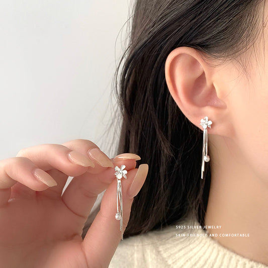 E廠【YC9560E】S925純銀清純白色花朵耳環女甜美仙女風設計感耳環耳飾品 24.02-3