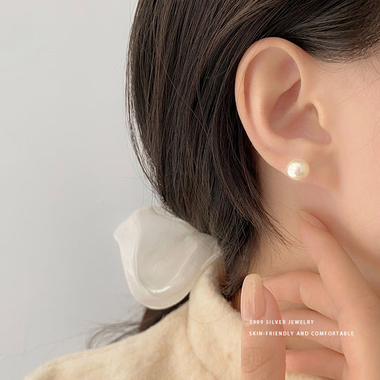 E廠【YC9534E】S999足銀簡約珍珠耳環女法式百搭氣質優雅高級感耳環耳環 24.05-4