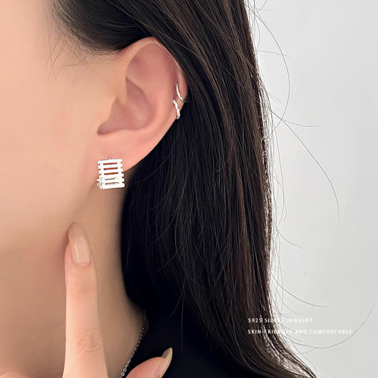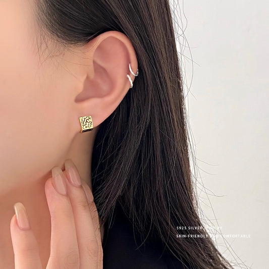 E廠【YC9791E】S925純銀個性線條方形立體耳扣女古金復古時尚ins風耳飾 24.01-4