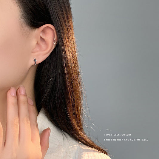 E廠【YC9792E】S925純銀個性肌理立體耳扣女復古設計感時尚帥氣耳圈耳飾 24.02-1