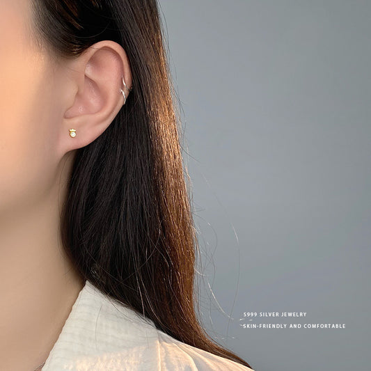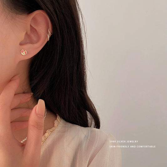 E廠【YC9772E】S999足銀新中式鑲鑽吉字耳環女小眾設計感國風迷你小耳飾 24.03-1