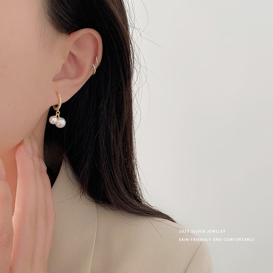 E廠【YC9762E】S925純銀精緻鑲鑽珍珠耳扣女輕奢高級感小眾設計感耳飾品 24.03-1