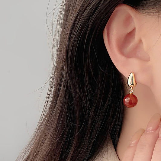 E廠【YC9802E】S925純銀水滴紅瑪瑙耳環輕奢精美高級感本命年紅色耳飾品爆款 24.01-4