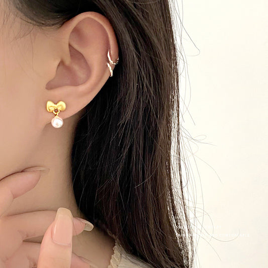 E廠【YC9868E】S925純銀甜美可愛珍珠蝴蝶結耳環輕奢少女感公主風耳飾品 24.01-4