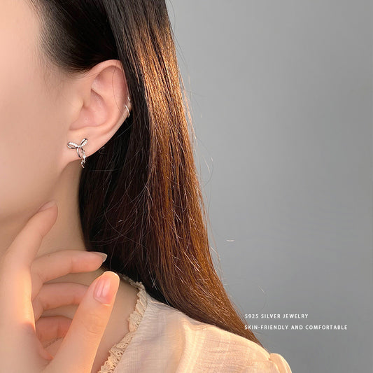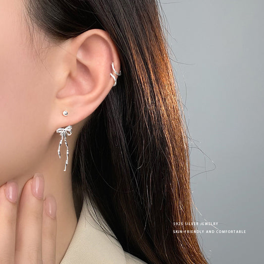E廠【YC9844E】S925純銀甜美蝴蝶結後掛式螺絲耳環女小眾設計感通勤耳飾 24.02-3