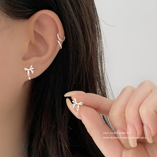 E廠【YC9845E】S925純銀四芒星蝴蝶結彎鉤螺絲耳環精緻秋冬新款甜美耳飾 24.11-4