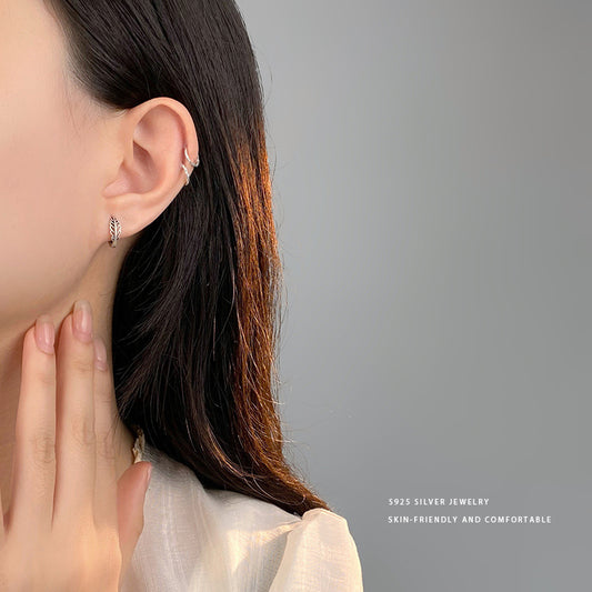 E廠【YC9855E】S925純銀個性樹葉耳扣女復古做舊帥氣時尚冷淡風耳圈耳飾 24.03-5