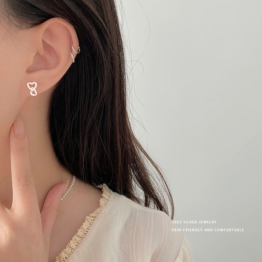 E廠【YC9848E】S925純銀甜美精緻個性雙愛心耳環百搭日常小眾設計感輕奢耳飾 24.01-2