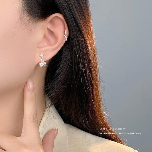 E廠【YC9863E】S999足銀鈴蘭花後掛式耳環新中式清新國風養耳洞氣質耳環 24.07-2