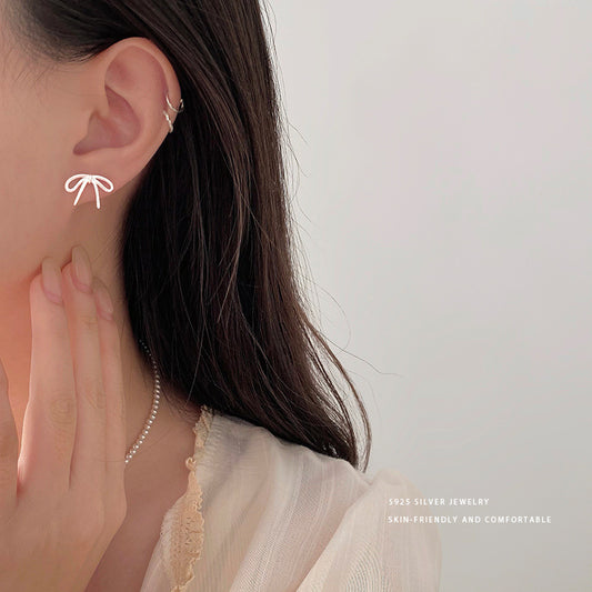 E廠【YC9862E】S925純銀蝴蝶結耳環清新甜美百搭日常款耳環小眾設計感耳環 24.01-2