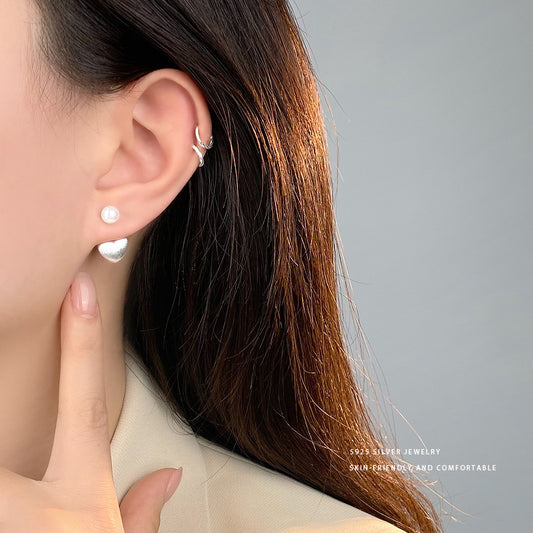 E廠【YC9869E】S925純銀輕奢珍珠愛心後掛式耳環女高級感設計感百搭耳飾 24.02-3