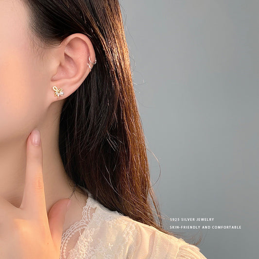 E廠【YC9895E】S925純銀精美蝴蝶結珍珠耳環女甜美小眾設計感耳環 24.03-1