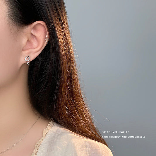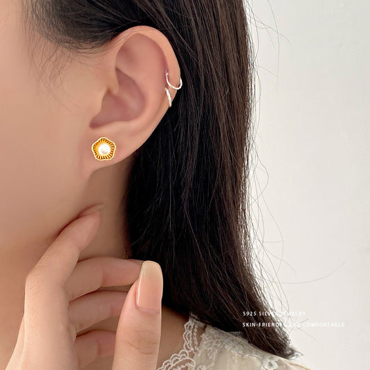 E廠【YC9883E】S999足銀氣質雙環相扣珍珠耳環女小眾設計感高級感耳飾品 24.05-1
