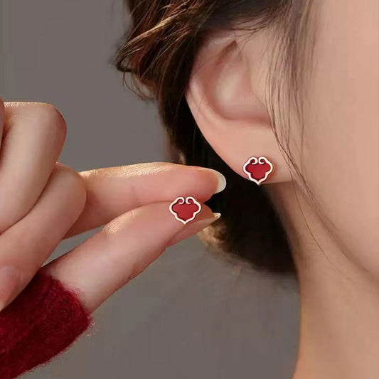 E廠【YC9893E】S925純銀本命年如意鎖耳環女爆款紅色耳環新年禮物耳飾品 24.02-1