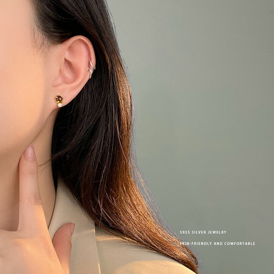 E廠【YC9878E】S925純銀精美虎眼石黑瑪瑙珍珠耳環女時尚新款高級感耳飾 24.04-3