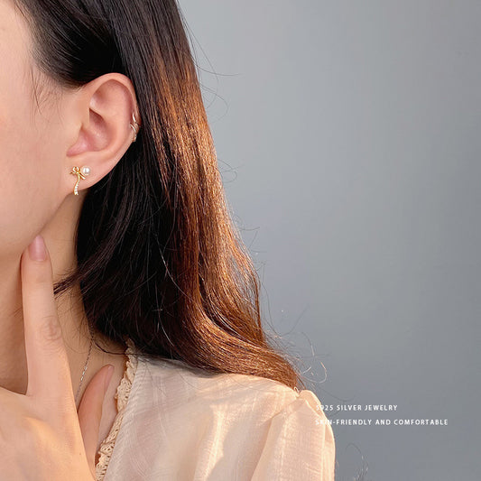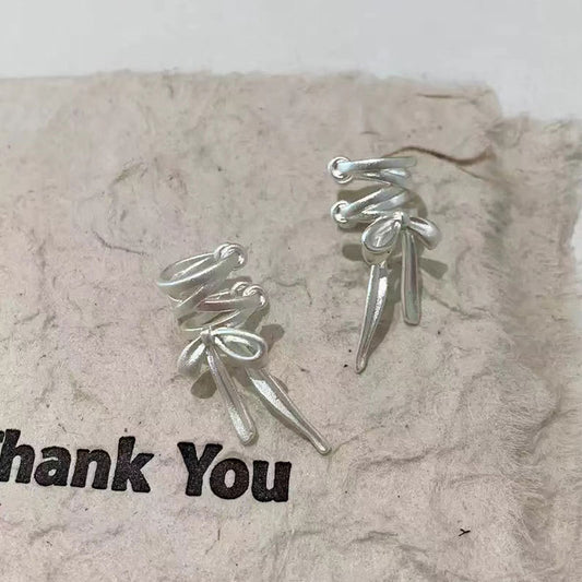 E廠【YC9872E】S925純銀甜美綁帶蝴蝶結耳夾女芭蕾風高級感無耳洞耳飾 24.02-1