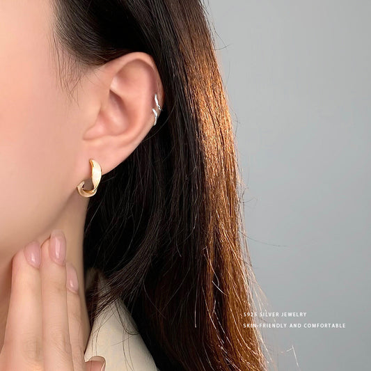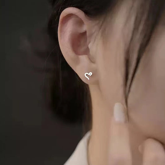 E廠【YC9932E】S999足銀簡約線條愛心耳環女小眾設計養耳學生氣質耳飾品 24.03-4
