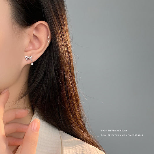 E廠【YC9900E】S925純銀小巧蝴蝶結珍珠耳環女小眾設計感日常通勤款耳飾 24.03-1
