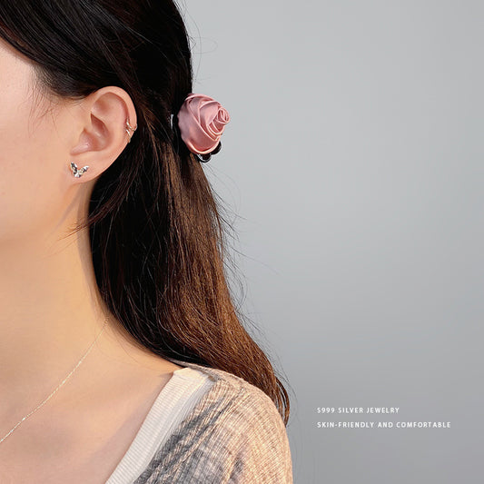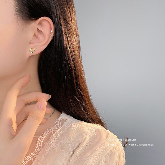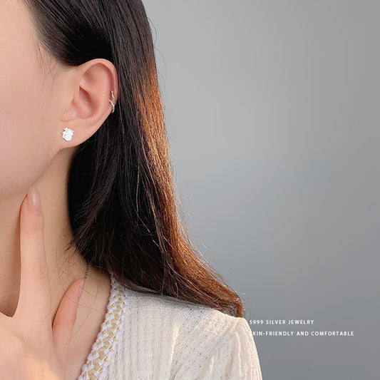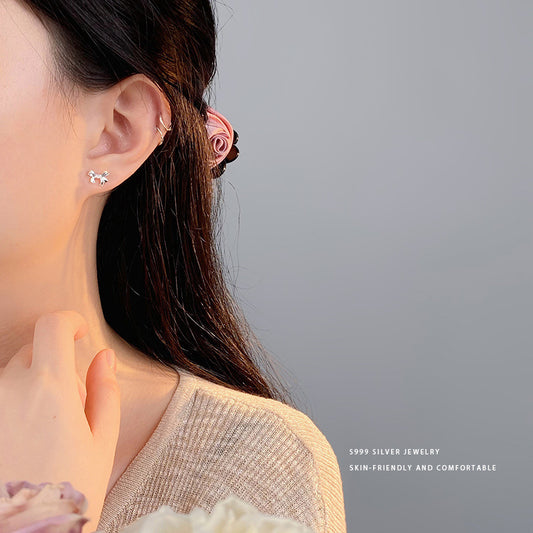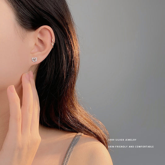 E廠【YC9902E】S999足銀法式蝴蝶酥愛心迷你小耳環女養耳小心機耳飾品 24.04-4