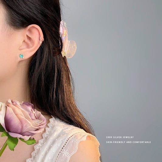 E廠【YC9922E】S999足銀個性蝴蝶耳環女螺絲款免摘時尚養耳洞新款耳骨釘 24.05-4