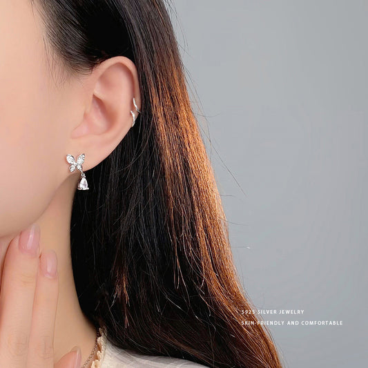 E廠【YC9905E】S925純銀精美蝴蝶水滴鋯石耳環女輕奢高級感百搭耳環 24.02-3