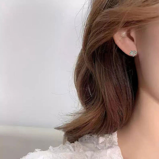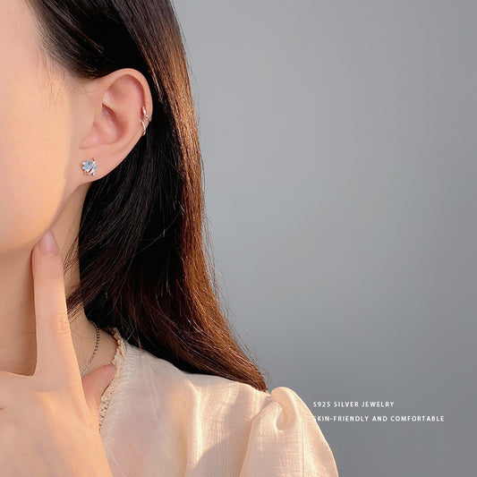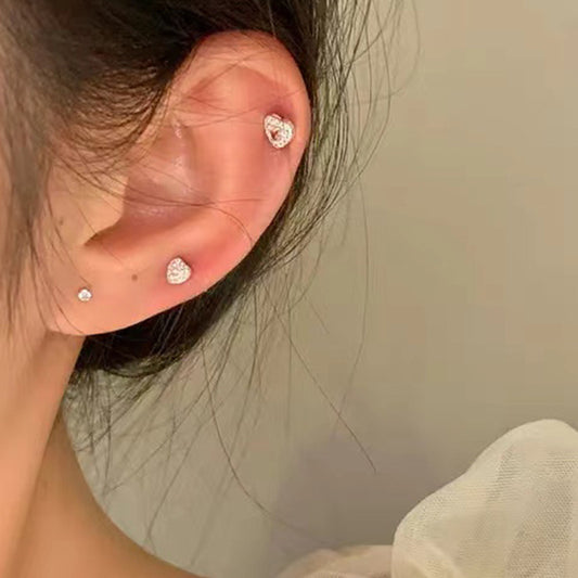 E廠【YC9974E】S999足銀幻彩鋯石愛心耳環女小眾耳骨釘防過敏免摘耳飾 24.03-4