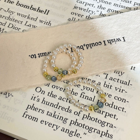 F廠【 DQ8966R】法式復古施家仿珍珠戒指女S925銀色彩捷克珠簡約手工設計指環 25.07-4