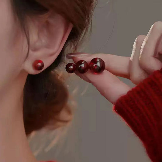 E廠【YC9997E】S999足銀簡約石榴石耳環女本命年紅色喜慶百搭高級感耳飾 24.02-1